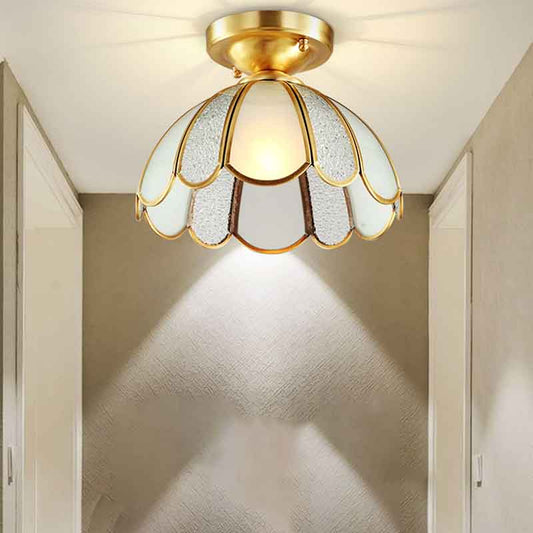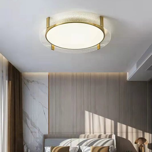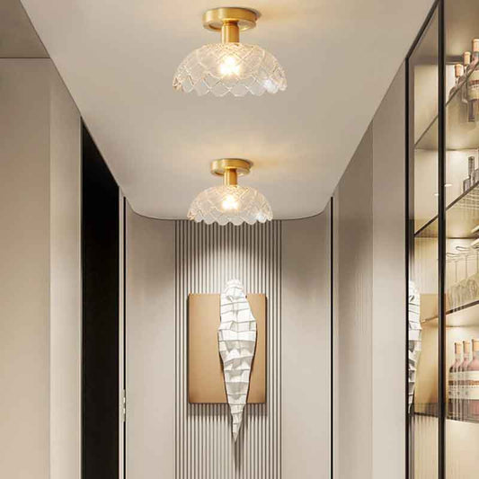 Minimalist Textured Glass Shade Brass LED Ceiling Light for Hallway Bedroom Balcony
