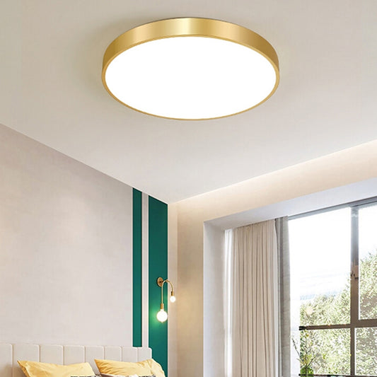 Light Luxury Dimmable Round Brass LED Ceiling Lamp Minimalist Lighting Fixture for Bedroom