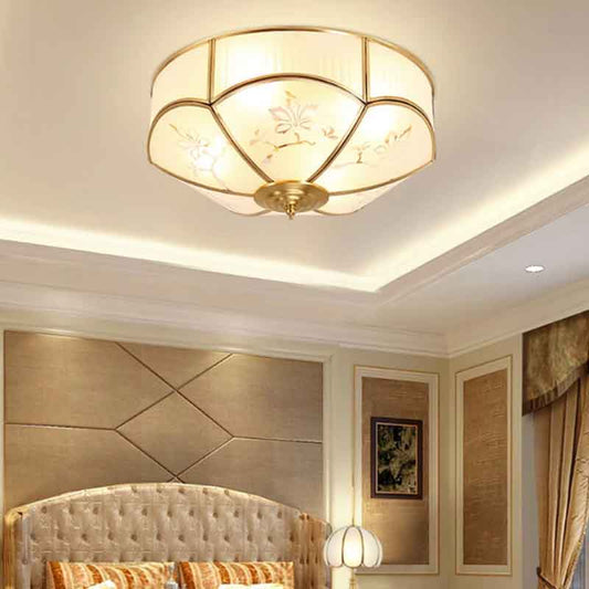 New Chinese Luxury Flower Glass LED Brass Ceiling Lamp with Remote Control Dimmable