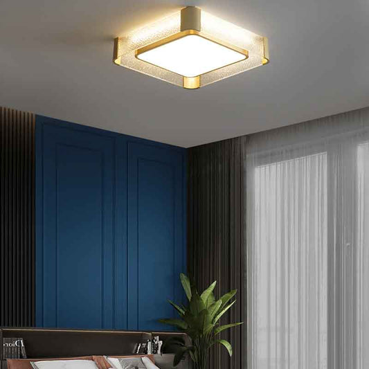 Modren 17" Square Brass Recessed LED Ceiling Light for Bedroom Hallway Balcony