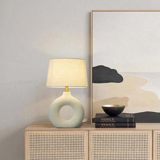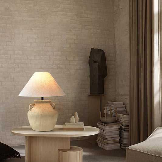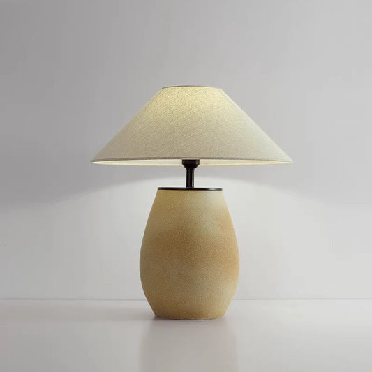 Wabi Sabi Beige Ceramic Table Lamp Handmade Retro Light Luxury New Chinese Light Suitable For Bedroom