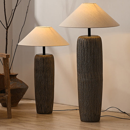 Wabi Sabi 31"/43" Column Ceramic Pot Floor Lamp With Beige Fabric Lampshade for Dropshipper