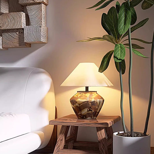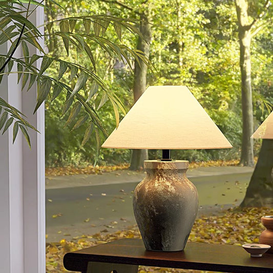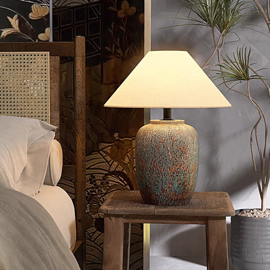 Ceramic Table Lamp Wabi-sabi Style Retro Decorative LED Lighting Creative Minimalist Bedroom Desk Lamp