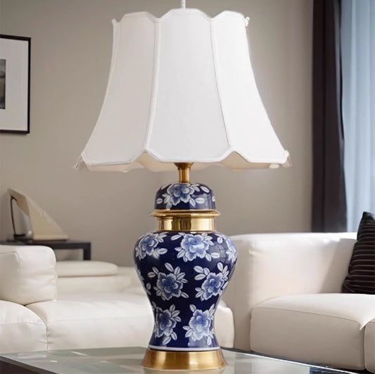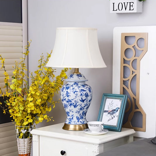 Chinese Blue and White Porcelain Ceramic Bedside Table Lamp White Fabric Shade E27 LED Light Bulb Included