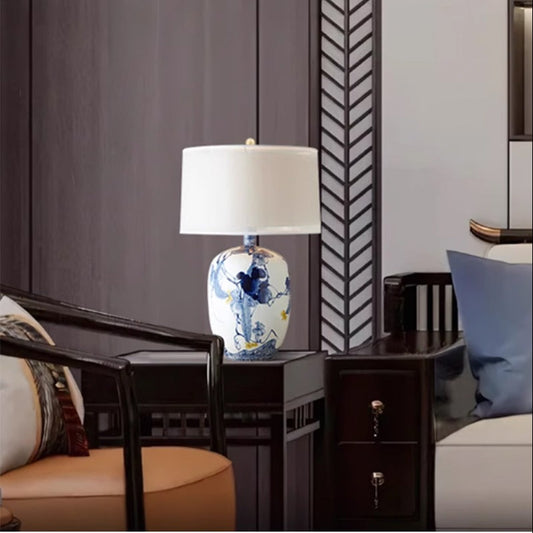 Chinese Hand-Painted Blue White Ceramic Lamp Bedroom Bedside Hotel Villa Living Room