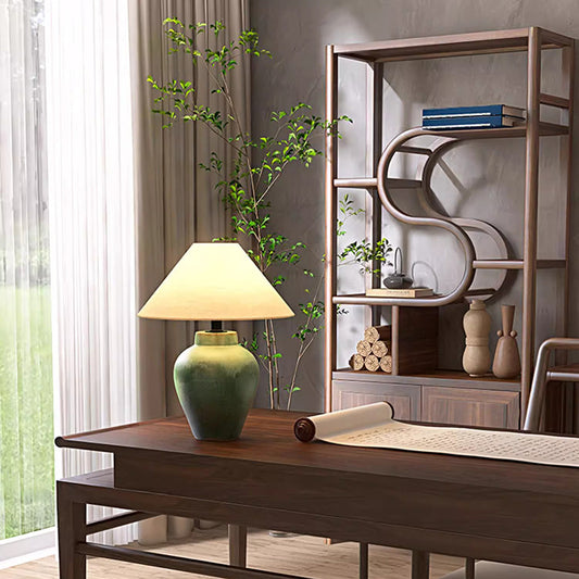 Chinese Table Lamp Creative Retro Ceramic Pot Desk Light Home Living Room Ornament Decor