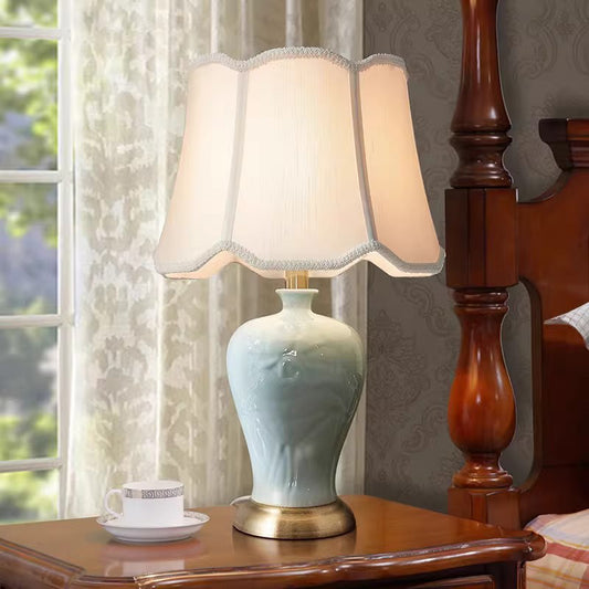 Ceramic Table Lamps European Cloth Cover Modern Bedside Decor Table Lamp EU/UK/ US Power Cord