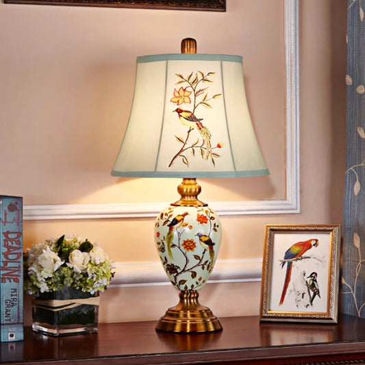 Country Flower&Bird Ceramic Desk Lamp Bedroom Living Room Sofa Lamp Pastoral Retro Bedside Lamp