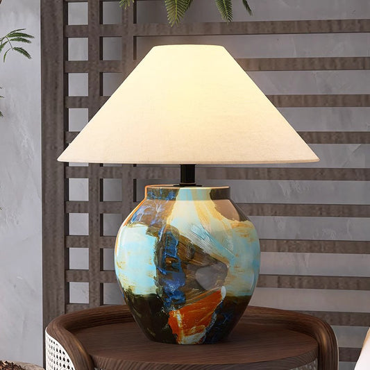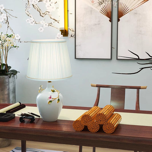 Galaxy Series Hand-painted Oriental Ceramic Table Lamp with Cone Linen Lampshade E27 LED Bulb