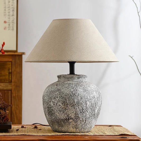 Kung Series Wabi Sabi Ceramic Table Light Geometric Shape Table Lamp with Fabric Shade for Bedroom