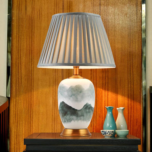 Kung Series Chinese Ink Landscape Painting Ceramic Table Lamp