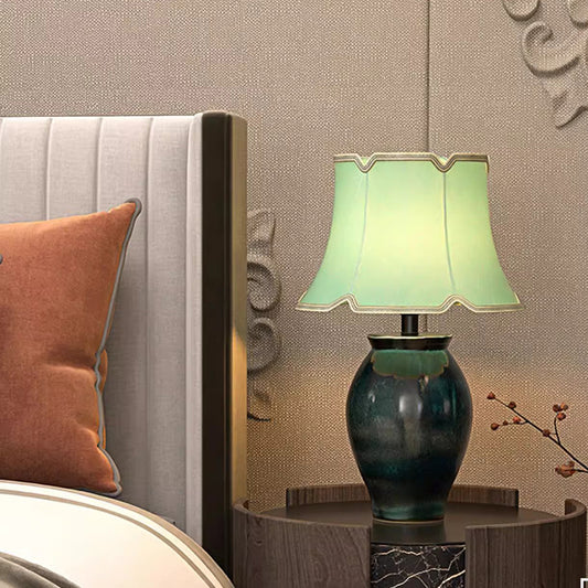 Jingdezhen Ceramic Table Lamp Dark Green Ceramic Base And Green Linen Shade Chinoiserie Desk Lamp