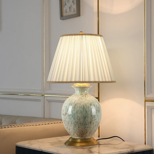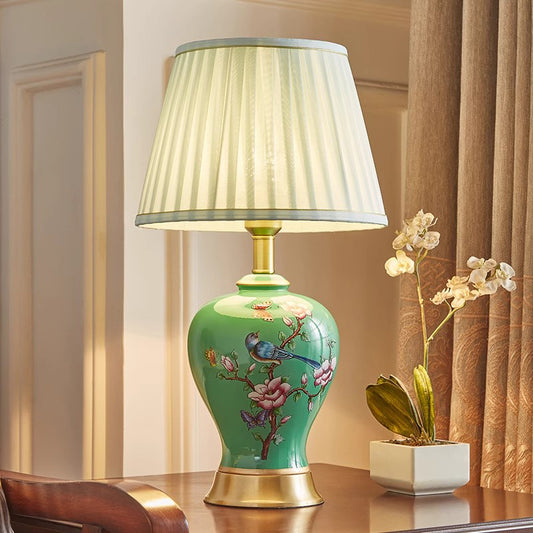 Modern Green Ceramic Table Lamp LED Chinese Creative Luxury Bedside Desk Light For Home Living Room Bedroom Decor