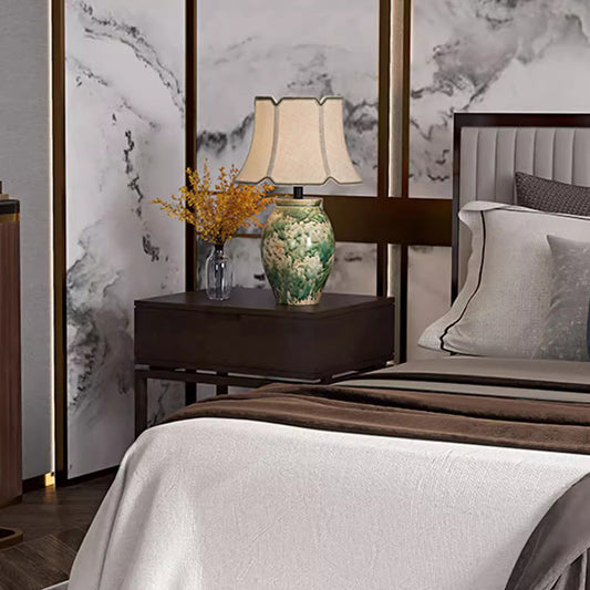 New Arrival Chinese Style Ceramic Table Lamp Green Ceramic Base And Cream Linen Shade
