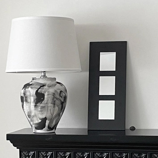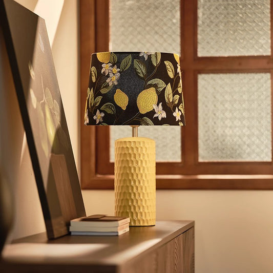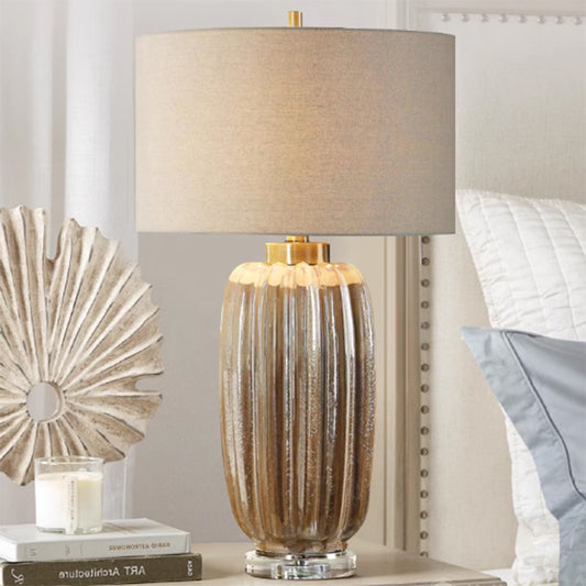 Modern Ceramic Table Light Geometric Shape Table Lamp with Fabric Shade for Bedroom