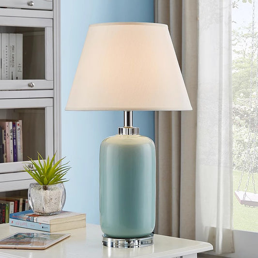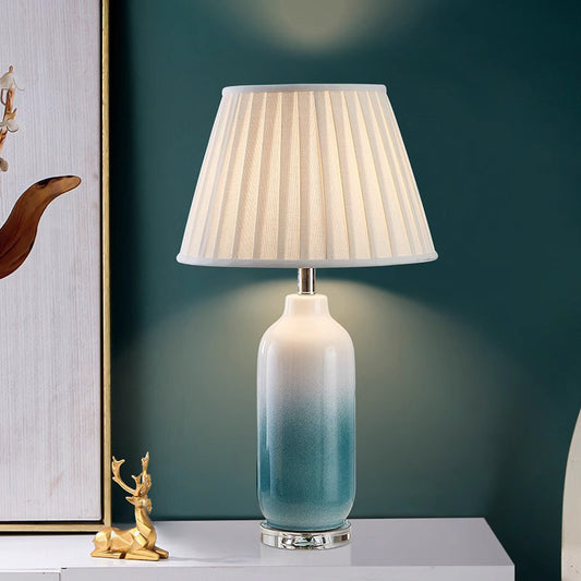 Vintage Ceramic Desk Lamp Cyan Color Ceramic Base and Linen Shade Desk Lamp Vintage Style For Bedroom E27
