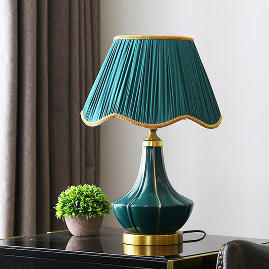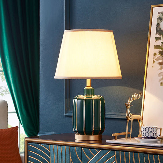Vintage Dark Green Ceramic Table Lamp Cloth CoverModern Living Room Bedroom Bedside Study E27 Decor Desk Lamp