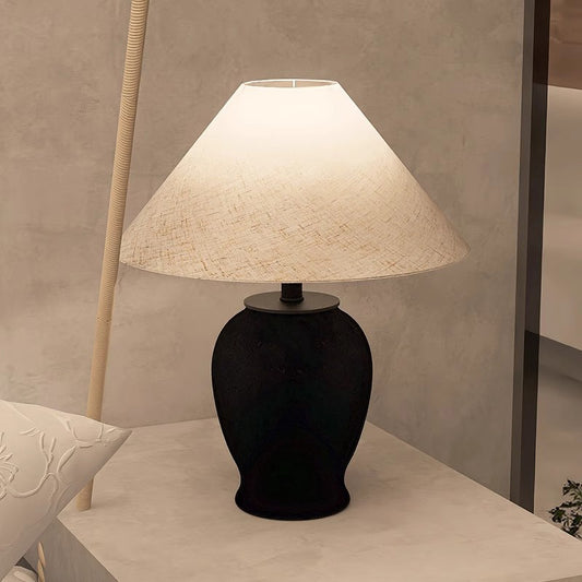 Vintage Ceramic Pot Black Color Table Lamp for Bedroom Living Room End Table with E27 Lamp Warm White 3000K