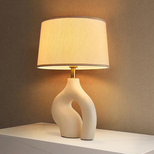 Designer Creative White Resin Table Lamp With Beige Fabric Lampshade