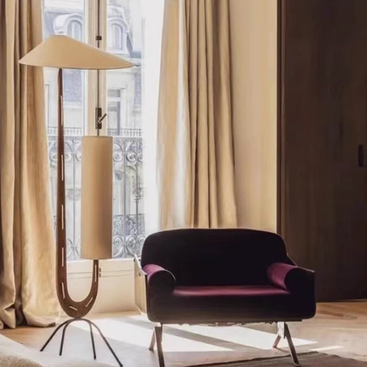 Japanese Wabi Sabi 48"/68" Solid Wood Floor Lamp With Beige Fabric Lampshade