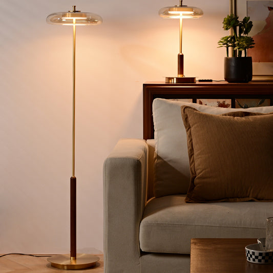 Light Luxury 50" Column Brass Floor Lamp With Amber Glass Lampshade