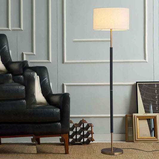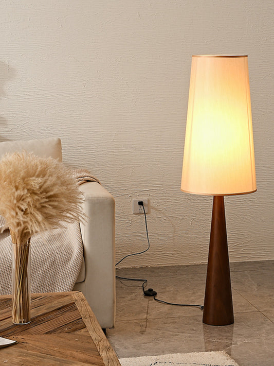 Double Fabric Lampshade Solid Wood Floor Lamp