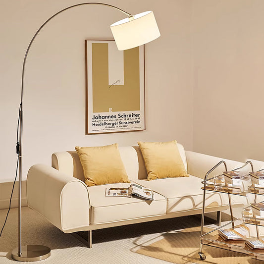 Modern 73" Arc Delicate Metal Floor Lamp With Beige Fabric Lampshade