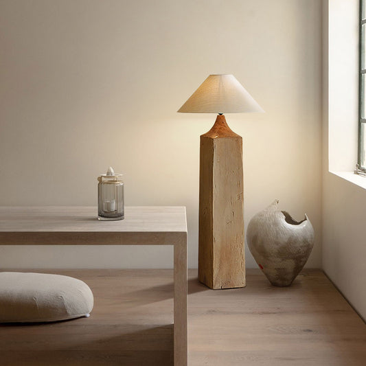 Retro 53" Column Solid Wood Floor Lamp With Beige Fabric Lampshade