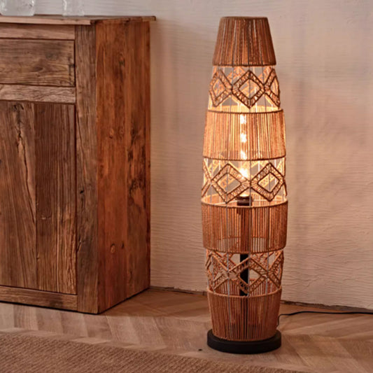 Retro Wabi Sabi 47" Column Sisal Floor Lamp Handmade Standing Lamp