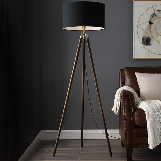 Novelty Solid Wooden Tripod 61" Floor Lamp With Black Fabric Lampshade