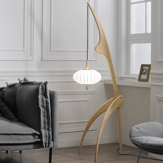 Tax Include Sea Wabi sabi Creative Design 60'' Solid Wood Floor Lamp Paper Lampshade LED Bulb E27 Socket