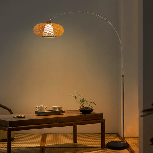 Vintage Arc Adjustable Bamboo Weaving Lampshade Floor Lamp