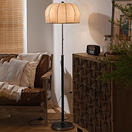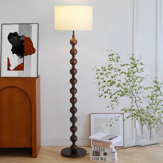 Vintage Column Solid Wood 63" Floor Lamp With Beige Fabric Lampshade