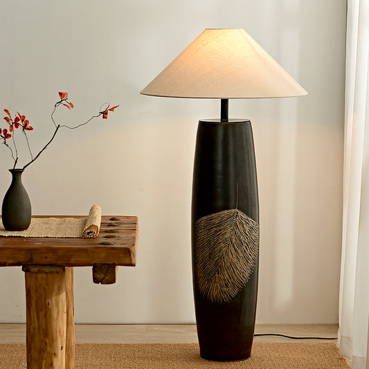 Wabi Sabi 31"/43" Column Ceramic Pot Floor Lamp With Beige Fabric Lampshade for Dropshipper