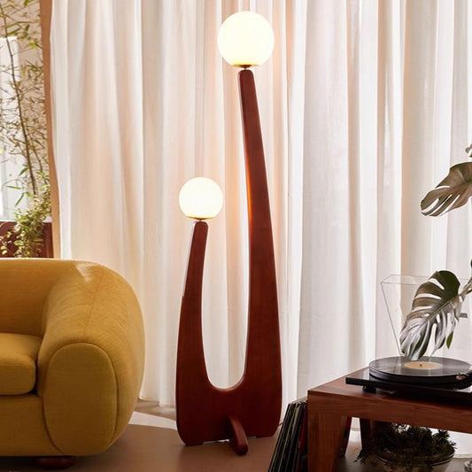 Vintage 63" Solid Wood Floor Lamp With Milk White Glass Lampshade LED G9 Bulb