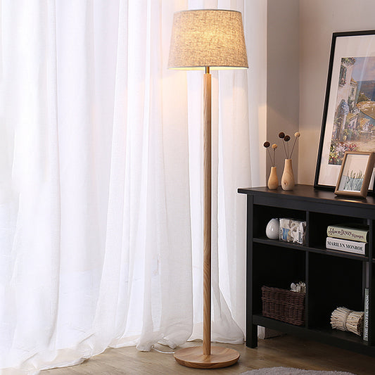 Traditional 61" Column Solid Wood Floor Lamp With Fabric Lampshade Standing Lamp
