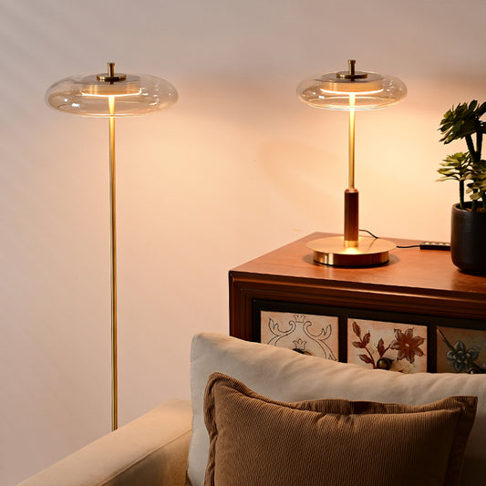 Modern Luxury Brass Table Lamp With Glass Lampshade Oak Wood Body