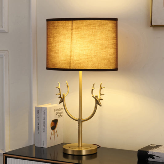 Modern LED Antler Brass Table Lamp Brown Color Fabric Lampshade for Bedroom Living Room