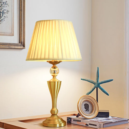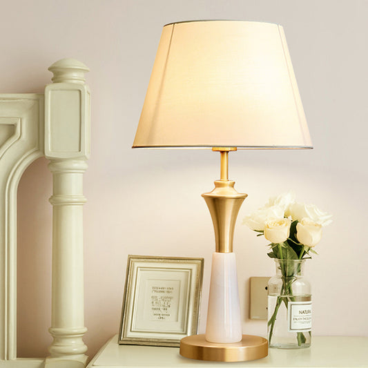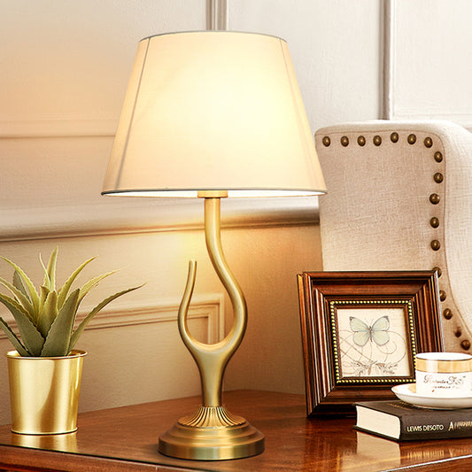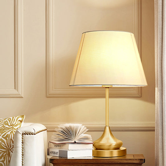 Light Luxury Gold Color Brass Table Lamp Fabric Lampshade Desk Lamp for Bedroom Living Room