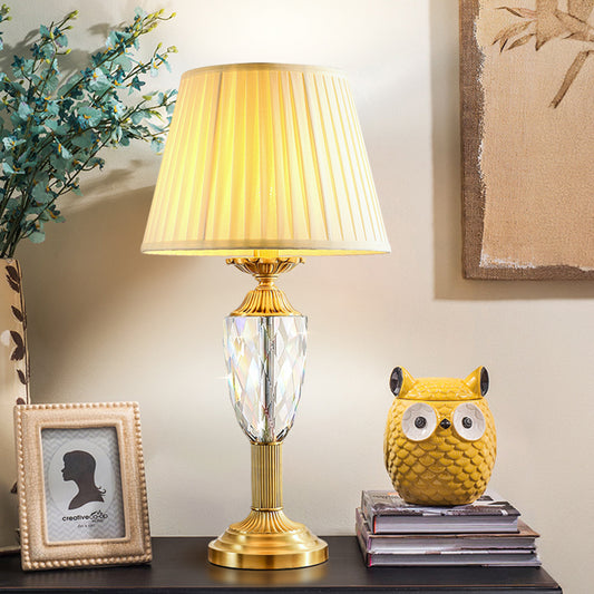 Light Luxury Modern Table Lamp Crystal Brass Body and Fabric Lampshade for Bedroom Living Room