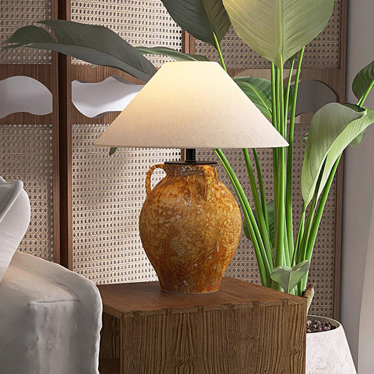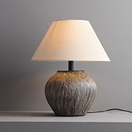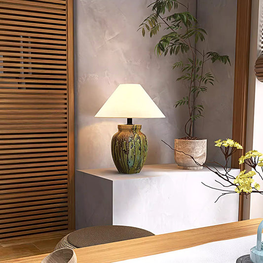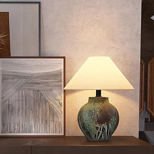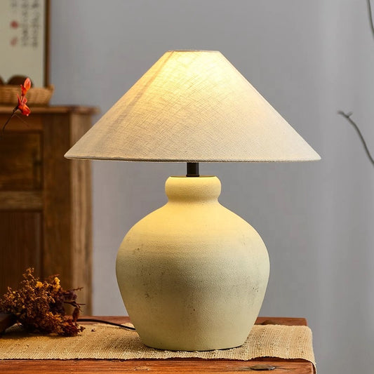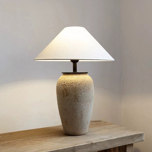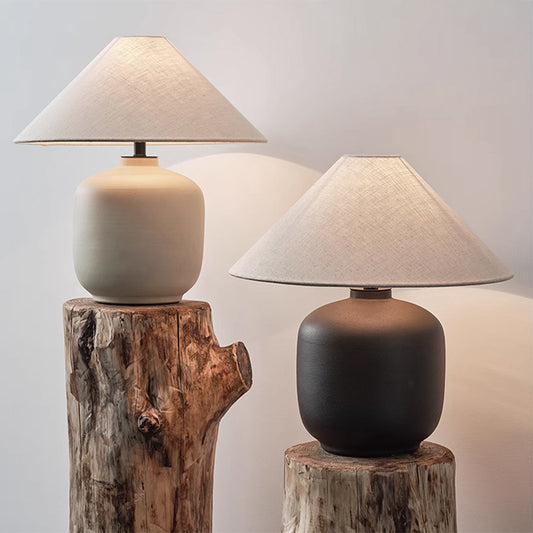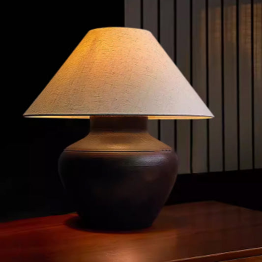 Wabi Sabi Ceramic Table Light Geometric Shape Table Lamp Cone Fabric Shade
