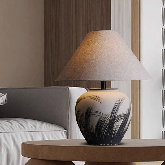 Wabi Sabi Ceramic Table Lamp Hand Painting Liene Fabric Desk Light for Living Room Bedroom