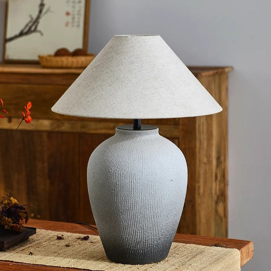 Wabi Sabi Ceramic Tank Table Lamp New Chinese Retro Designer Homestayroom Hotel Living Room Bedroom Bedside Lamp