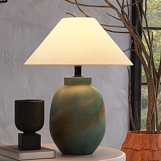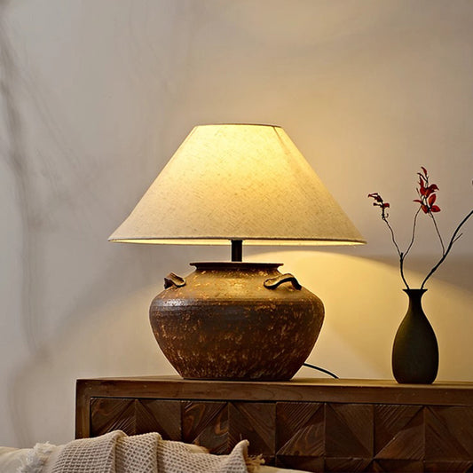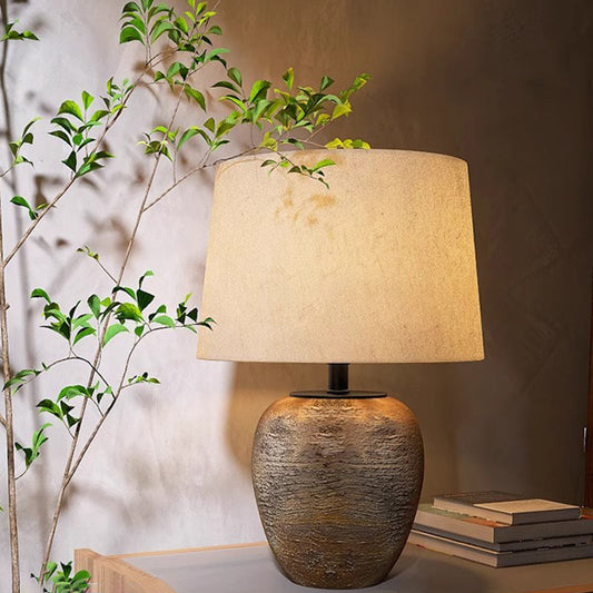 Wabi-sabi Style Living Room Table Lamp LED Pottery Ceramic Fabric Table Lamp Chinese Bedroom