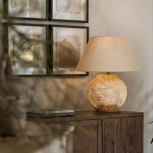 Wabi Sabi Typhoon Lamps Ceramic Cloth Lamps Retro Living Room Lamp Natural Wind Simple Wind