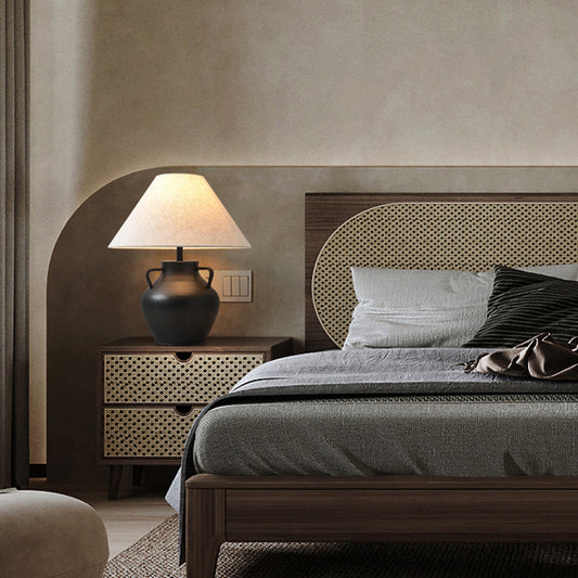 20.5'' Wabi Sabi Ceramic Table Light Geometric Shape Farmhouse Lamp Cone Fabric Shade