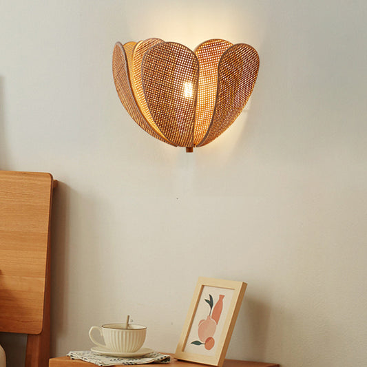 Rattan E27 Wall Light Japanese Crafted Petal Light Foyer Bedroom Beside Homestay Corridor Background Lamp