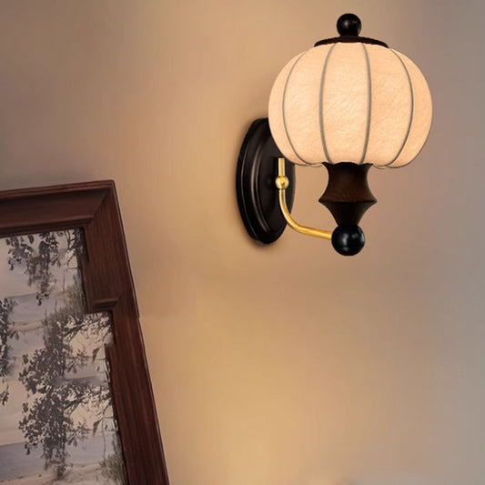 Vintage Solid Wood Wall Lamp With Silk Lampshade for Bedroom Bedside Lights Living Room Aisle Wall Light