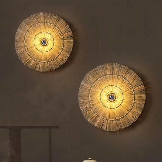 Handmade LED Grass Woven Circular Wall Lamp Modern Home Living Room Background Wall Lighting Fixtures Dining Room Decor Lights
