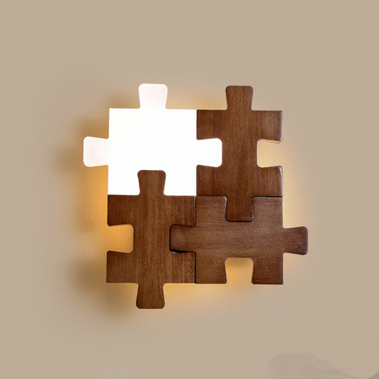 Walnut Wood Grid Simple Modern Wabi-sabi style Wall Sconce lights for Bedroom Bedside Living Dining Room
